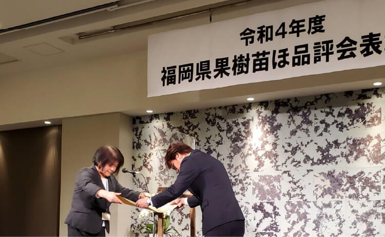- 福岡県果樹苗ほ品評会に於いて農林水産大臣賞受賞